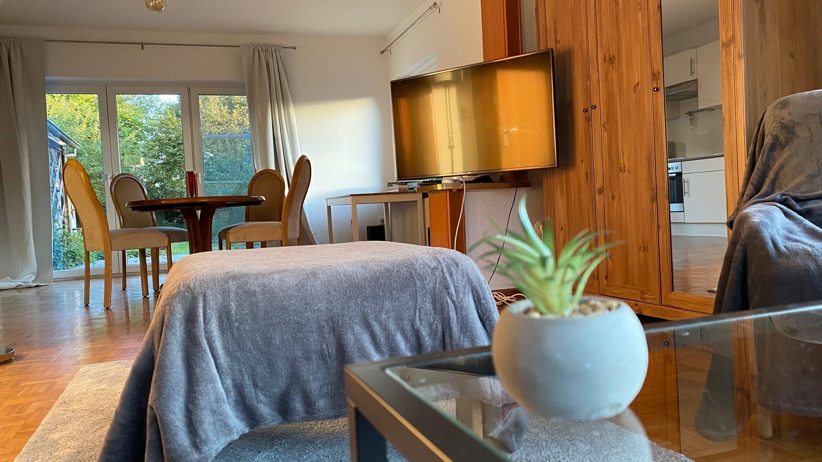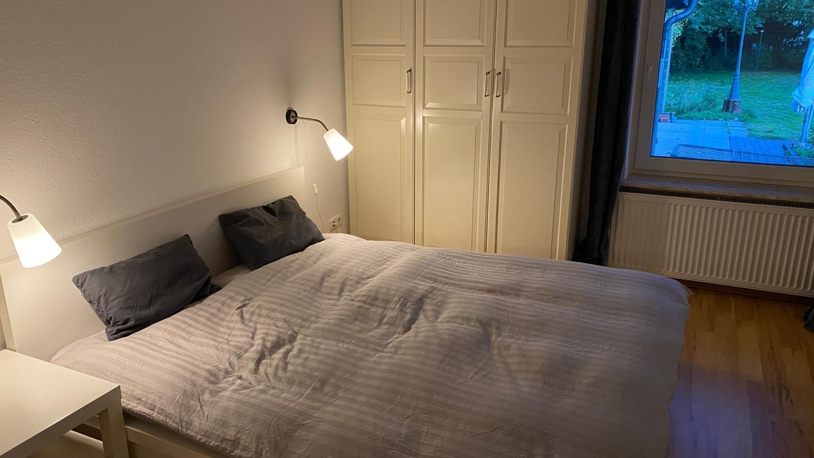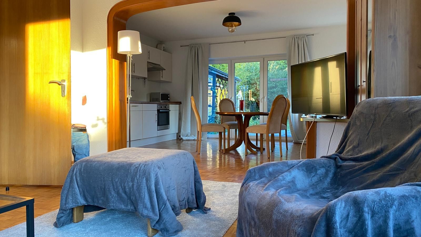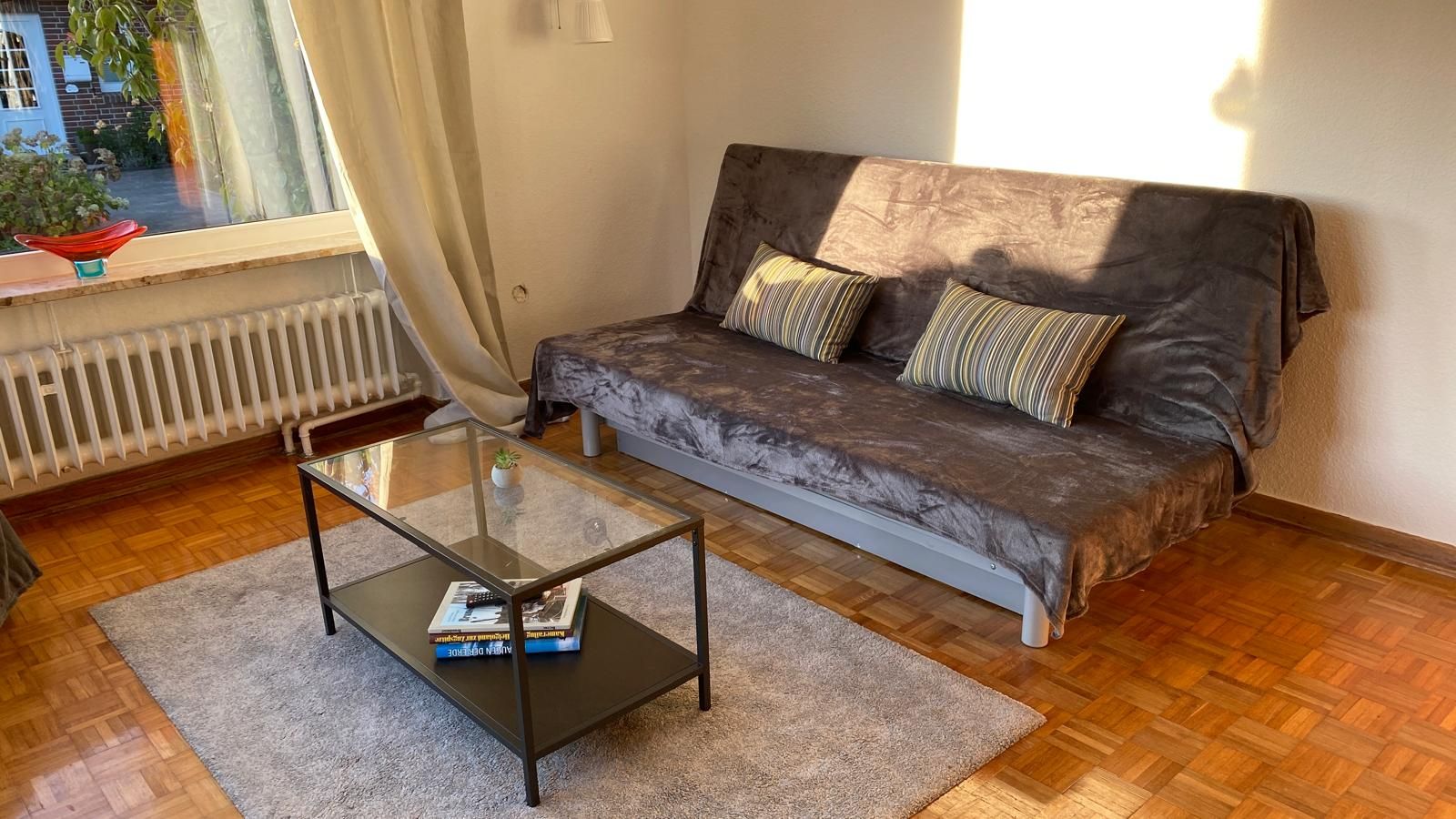 Die Wohnung Elbe befindet sich in unserem Ferienhaus im Meisenweg 8. Sie liegt in ruhiger Lage am Ende einer Sackgasse am grünen Wanderweg entlang der Brake. Hinter dem Wanderweg erstreckt sich der Friedhof wie ein grüner Park. Die Wohnung ist geeignet für 2 bis 4 Personen, es besteht ein Schlafzimmer sowie 2 großzügig ineinander übergehende Wohnzimmer mit Doppelcouch und einer komplett eingerichteten Einbauküche inclusive Geschirrspüler und Waschmaschine und ein modernes Bad mit Dusche. Das Wohnzimmer liegt in Ost/West Lage und ist damit den ganzen Tag lichtdurchflutet. 2 große Glastüren verbinden das Wohnzimmer mit der großzügigen Terrasse, auf der man es sich auf den vorhandenen Terrassenmöbeln gemütlich machen kann. Unter der Sonnenmarkise kann man geschützt den großen liebevoll angelegten Garten genießen. Ein neuer großer Fernseher mit Flachbildschirm kann sowohl von der Essecke als auch von der Couchecke genutzt werden. Ein dazugehöriger Parkplatz befindet sich direkt am Haus. Bitte haben Sie Verständnis dafür, dass im Interesse der anderen Gäste in der Wohnung - wie in allen unseren Wohnungen - nicht geraucht werden darf und Haustiere ebenfalls nicht erlaubt sind. Ab sofort steht eine 11 kW eWall Lademöglichkeit für Elektro-Fahrzeuge zur Verfügung.
